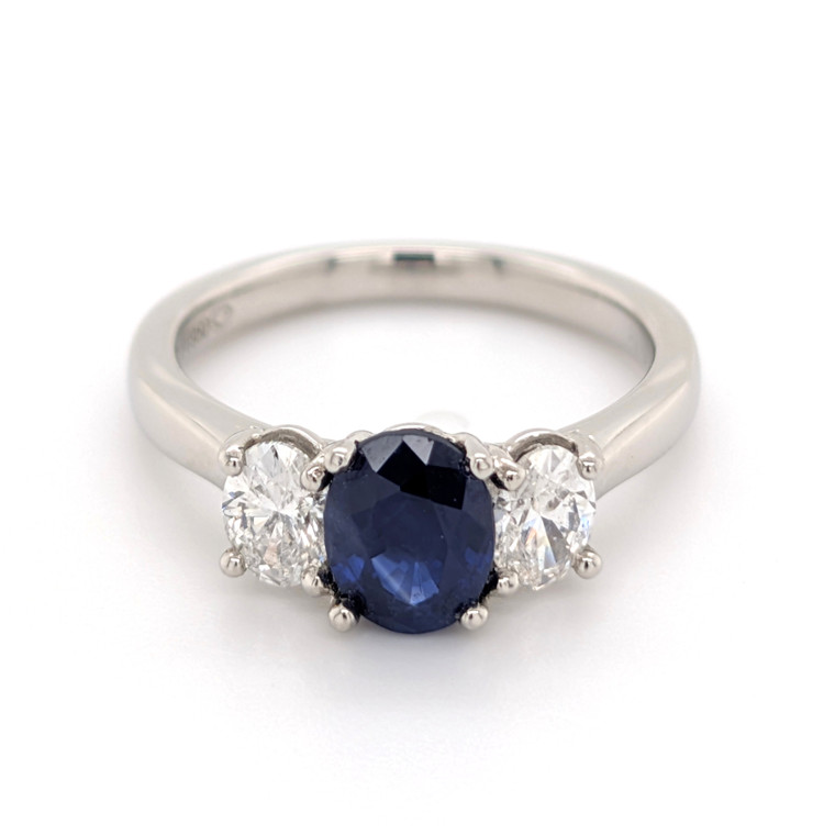 Platinum 0.88ct Oval Sapphire & 0.62ct Diamond Cluster Ring